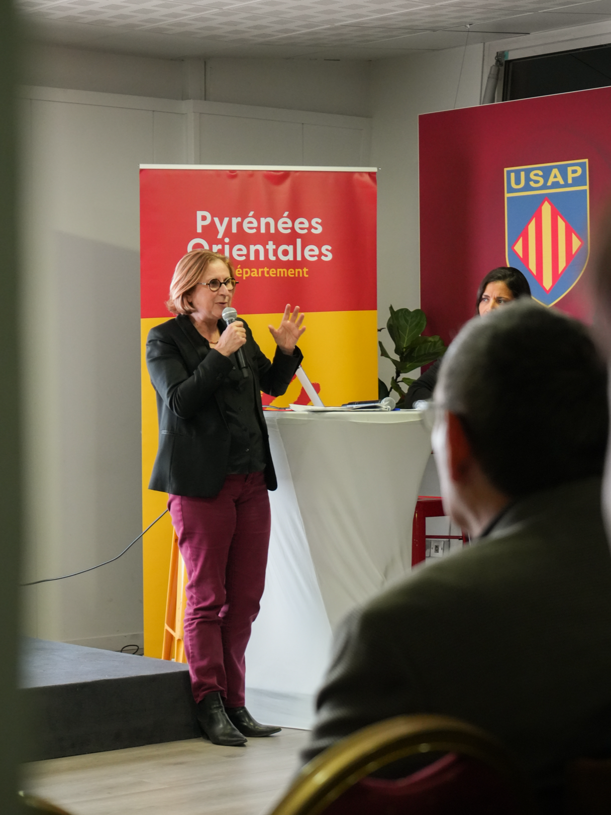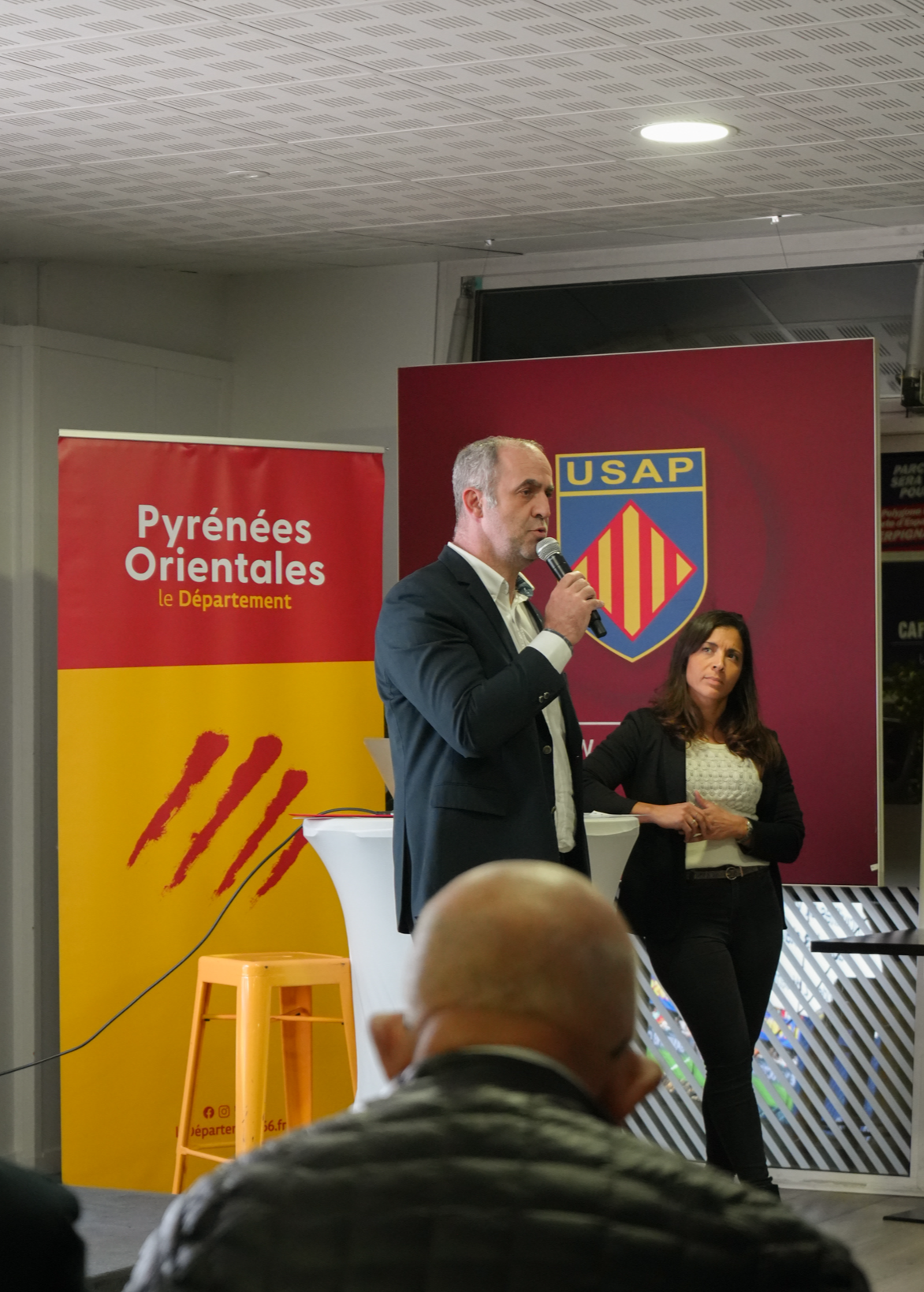 Bruno Rolland, Directeur Général de l'USAP, et Hermeline Malherbe, Présidente du Département, ont rappelé les valeurs essentielles du rugby : respect, convivialité, responsabilité.