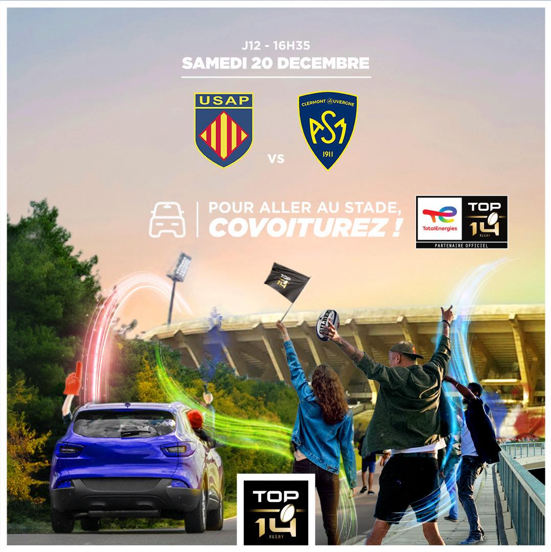 Le service Stadium Go débarque en Catalogne, l'USAP s'associe à l'initiative de la Ligue National de Rugby et de Total Energies en proposant une offre de co-voiturage pour tous les fans de rugby ! Dès 𝟮 𝗽𝗲𝗿𝘀𝗼𝗻𝗻𝗲𝘀 co-voiturées (chauffeur + 2 personnes) bénéficiez d'un 𝗽𝗮𝗿𝗸𝗶𝗻𝗴 𝘀𝗲́𝗰𝘂𝗿𝗶𝘀𝗲́ proche du stade* Profitez-en dès maintenant pour la rencontre USAP / ASM au stade Aimé Giral. ⇒ Formulaire d'inscription dédié aux supporters de l'USAP ⤵️ https://bit.ly/covoiturage-usa-perpignan