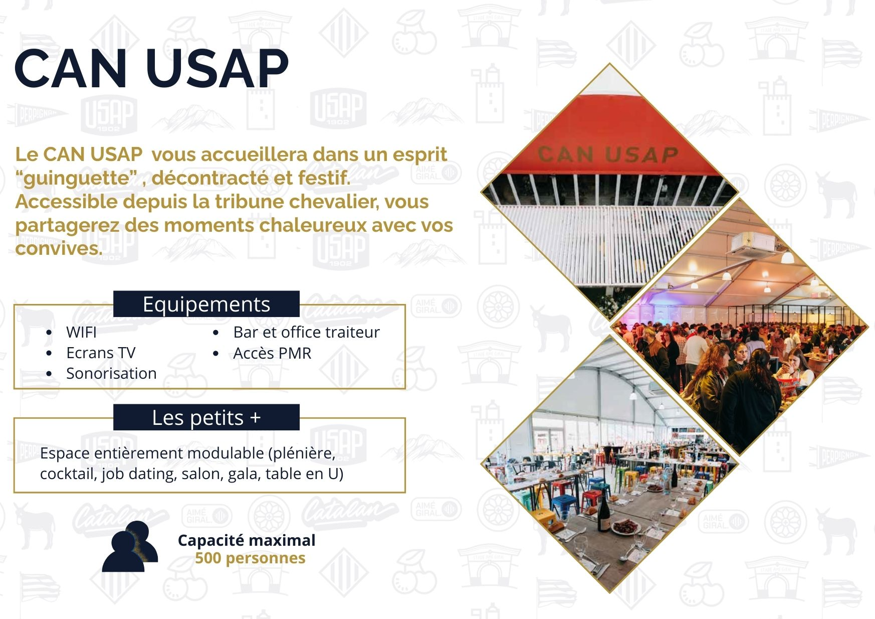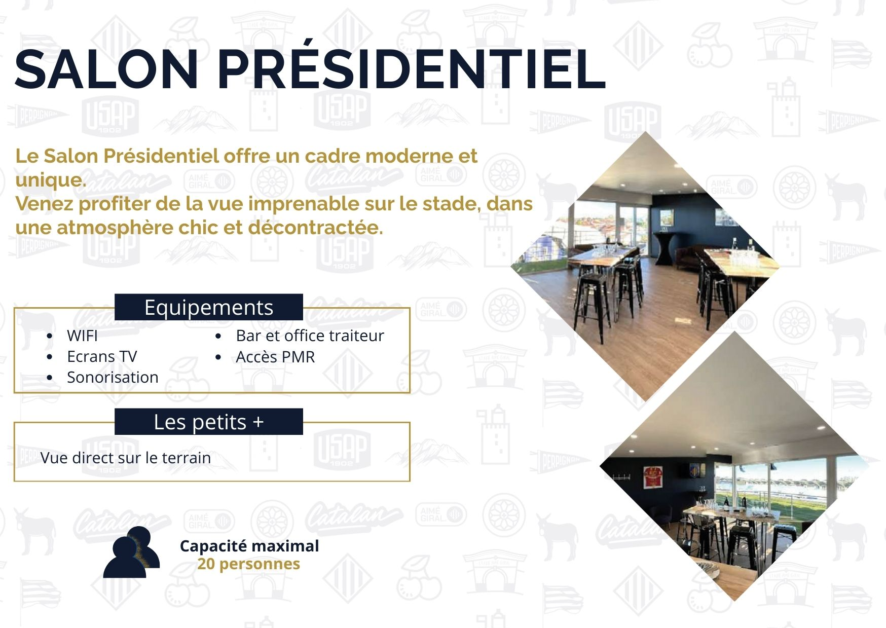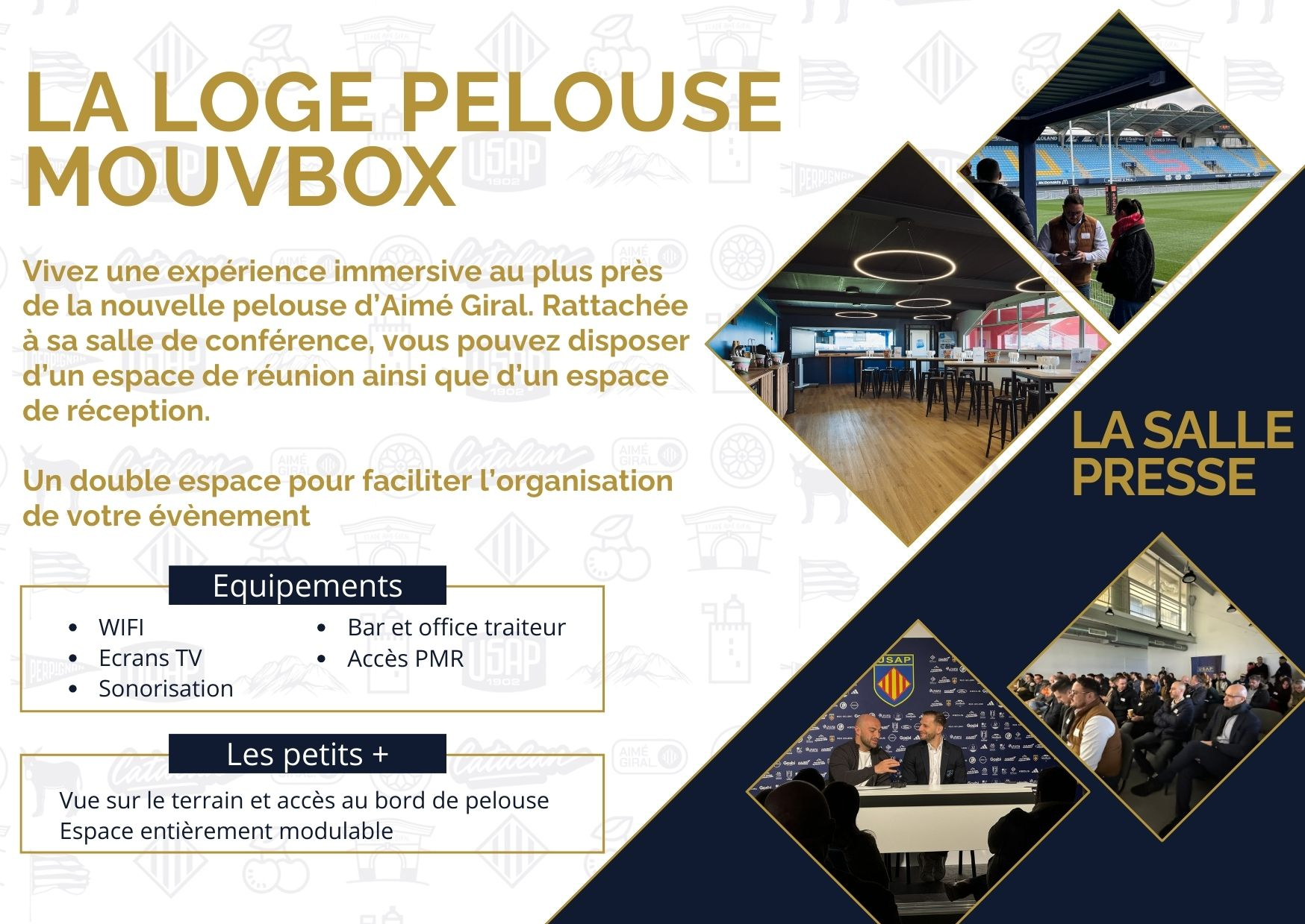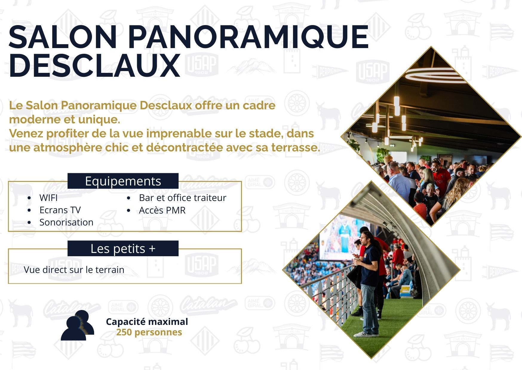 Le Stade Aimé Giral vous ouvre ses portes pour l'organisation de tous vos événements de 9 à 300 personnes, en vous proposant des packages clés en main.